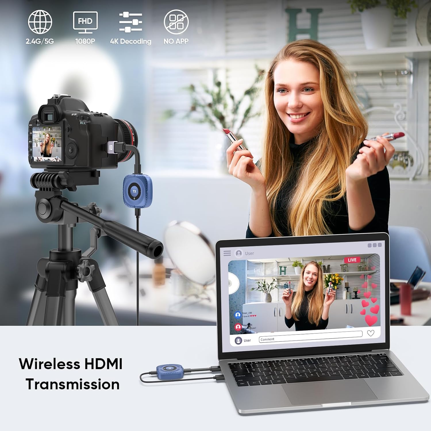 Plug & Play 4K Wireless HDMI – Connect Laptop, PC, or TV Box to Any Projector or Display
