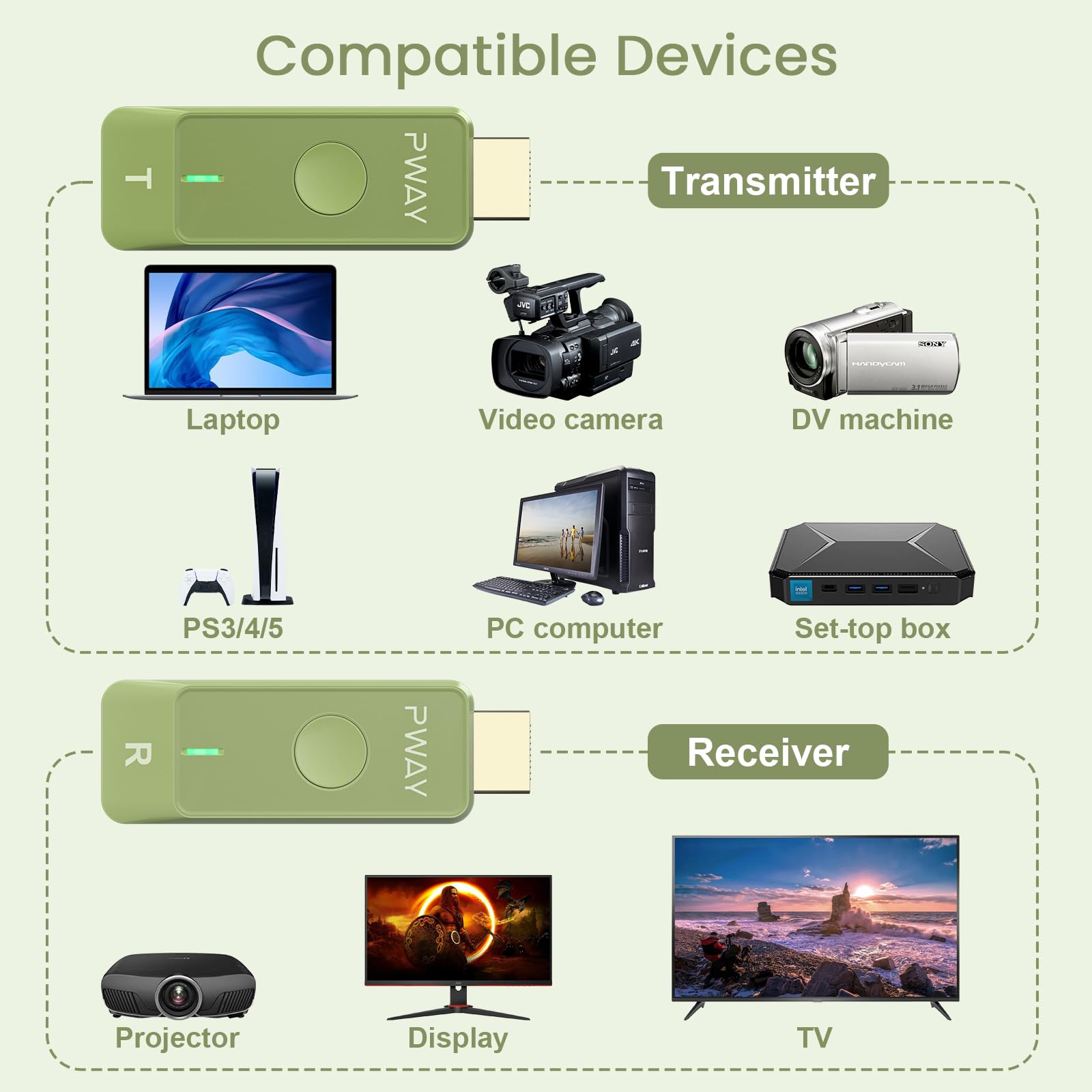 Wireless HDMI Extender is a high-performance wireless transmission device designed to wirelessly project content from small-screen smart devices such as computers, tablets, laptops, and Macs to large-screen devices like HD TVs, displays, and projectors.