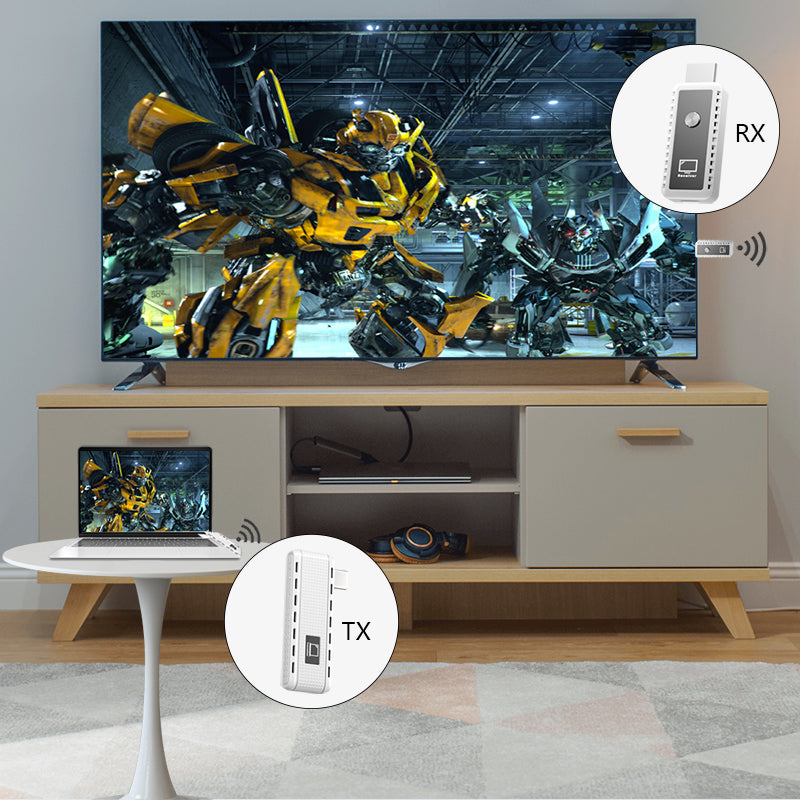Wireless HDMI Extender is a high-performance wireless transmission device designed to wirelessly project content from small-screen smart devices such as computers, tablets, laptops, and Macs to large-screen devices like HD TVs, displays, and projectors.