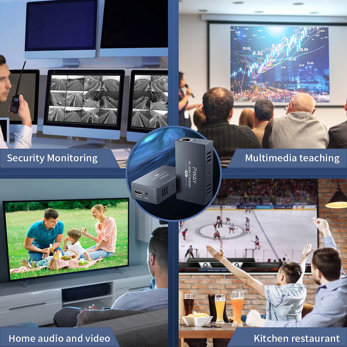 1)HDMI Extender for monitoring system. Camera---HDMI Transmitter---Ethernet Cable---HDMI Receiver---Monitor.